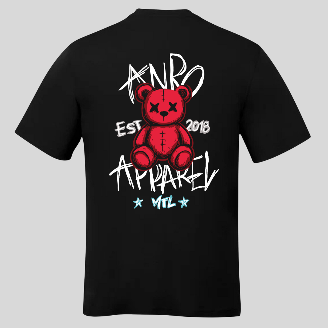 T-shirt noir en Ă©dition limitĂ©e, fabriquĂ© avec des matĂ©riaux de qualitĂ© et ornĂ© de notre imprimĂ© au devant et au dos « Teddy Bear Trash »Â